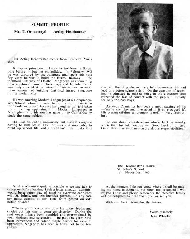 A profile of Mr. T. Ormanroyd - Acting Headmaster,