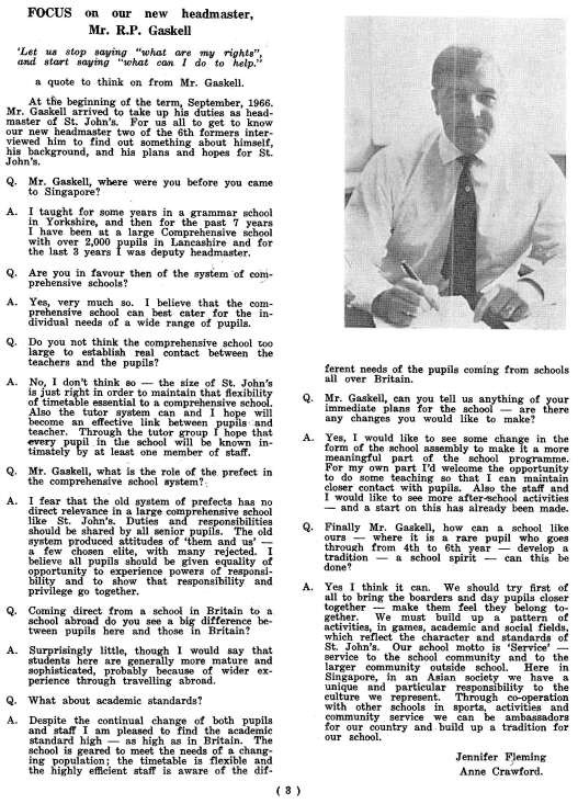 The new Headmaster Mr. R.P. Gaskell interviewed by