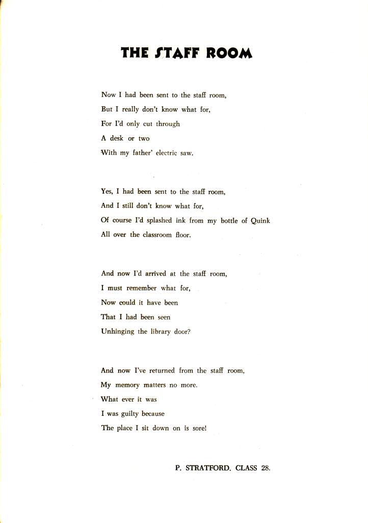 ![]() Page 25 The Staff Room by P. Stratford. Class 28 |
