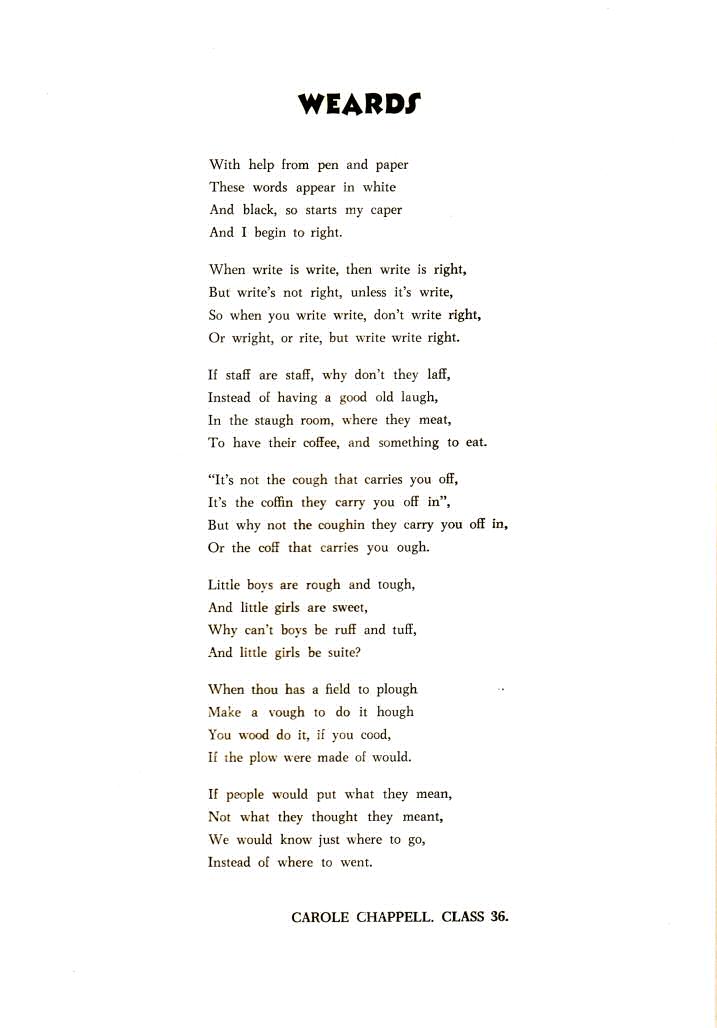 ![]() Page 28 Weards by Carole Chappell. Class 36 |