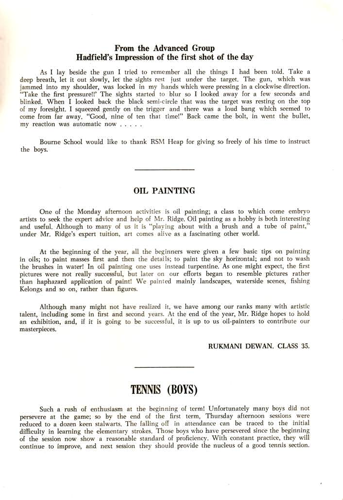 ![]() Page 6 Shooting - continued Oil Painting - Rukmani Dewan. Class35 Tennis (Boys) |