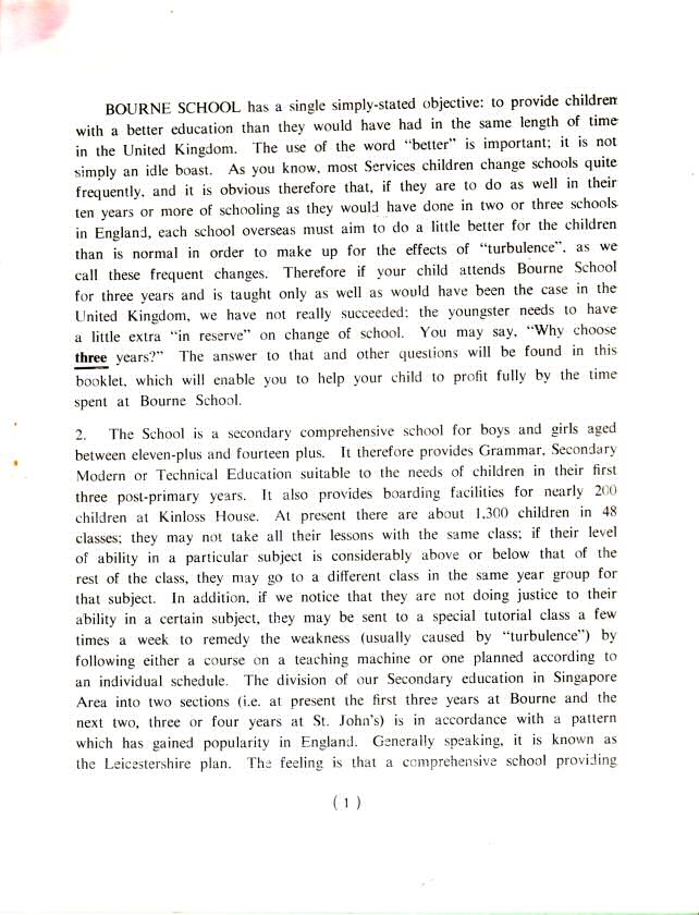 Bourne Secondary School Prospectus. There is no date of issue, but