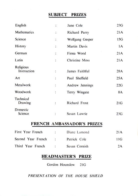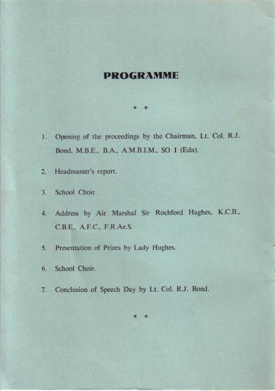 Thanks to Mike Johns for this copy of the Bourne School Speech Day 1968.