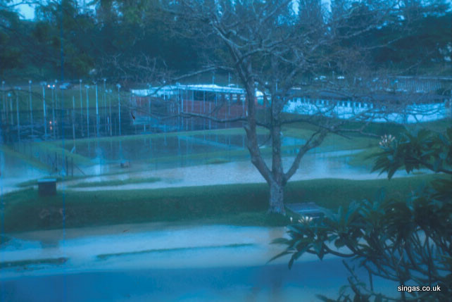 Rain stopped play after an hour of monsoon rain taken from our house in Wellington Road, of the dockyard football pitch under water. |