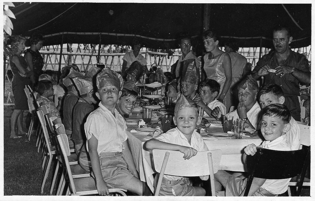 Xmas party, I am in middle two brothers, to my right and my dad with camera at back, do not remember any of the others. |