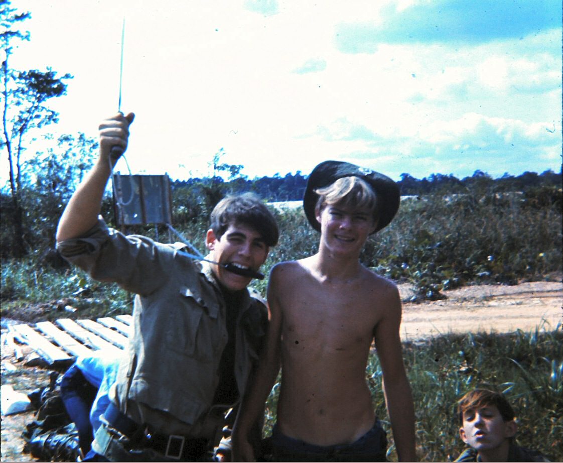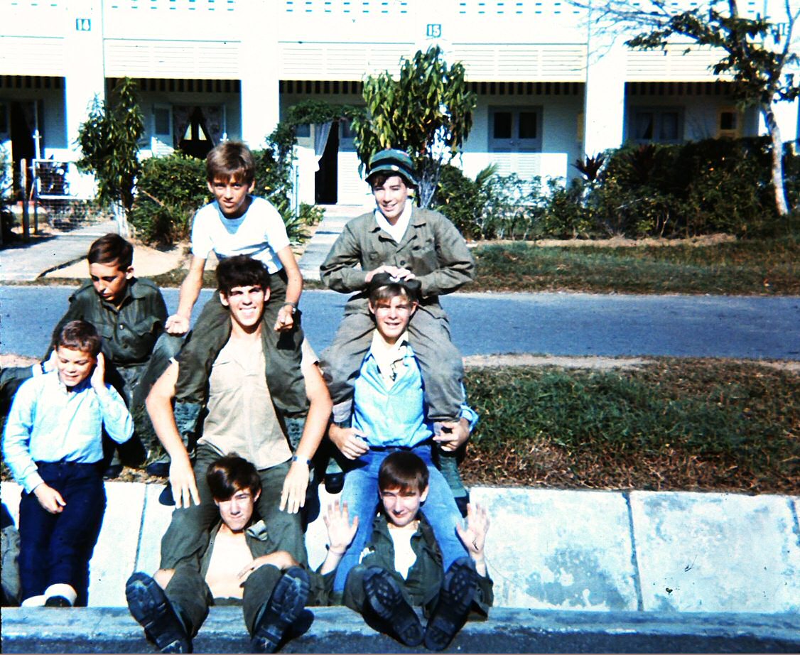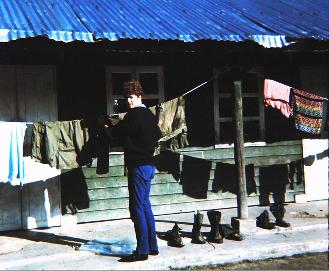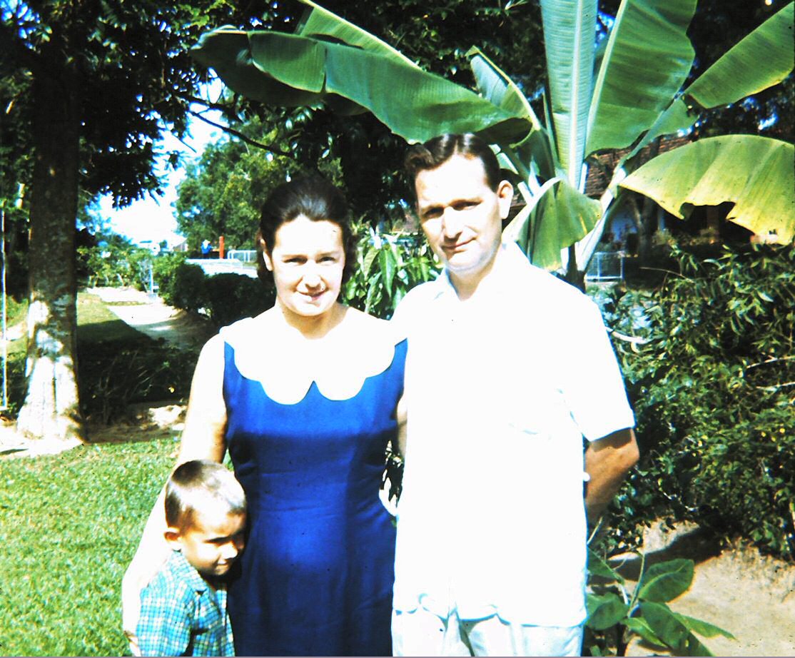 Mum Dad (Leah and Stan) and Colin in the front garden 51 Regent Street RAF Seletar. |