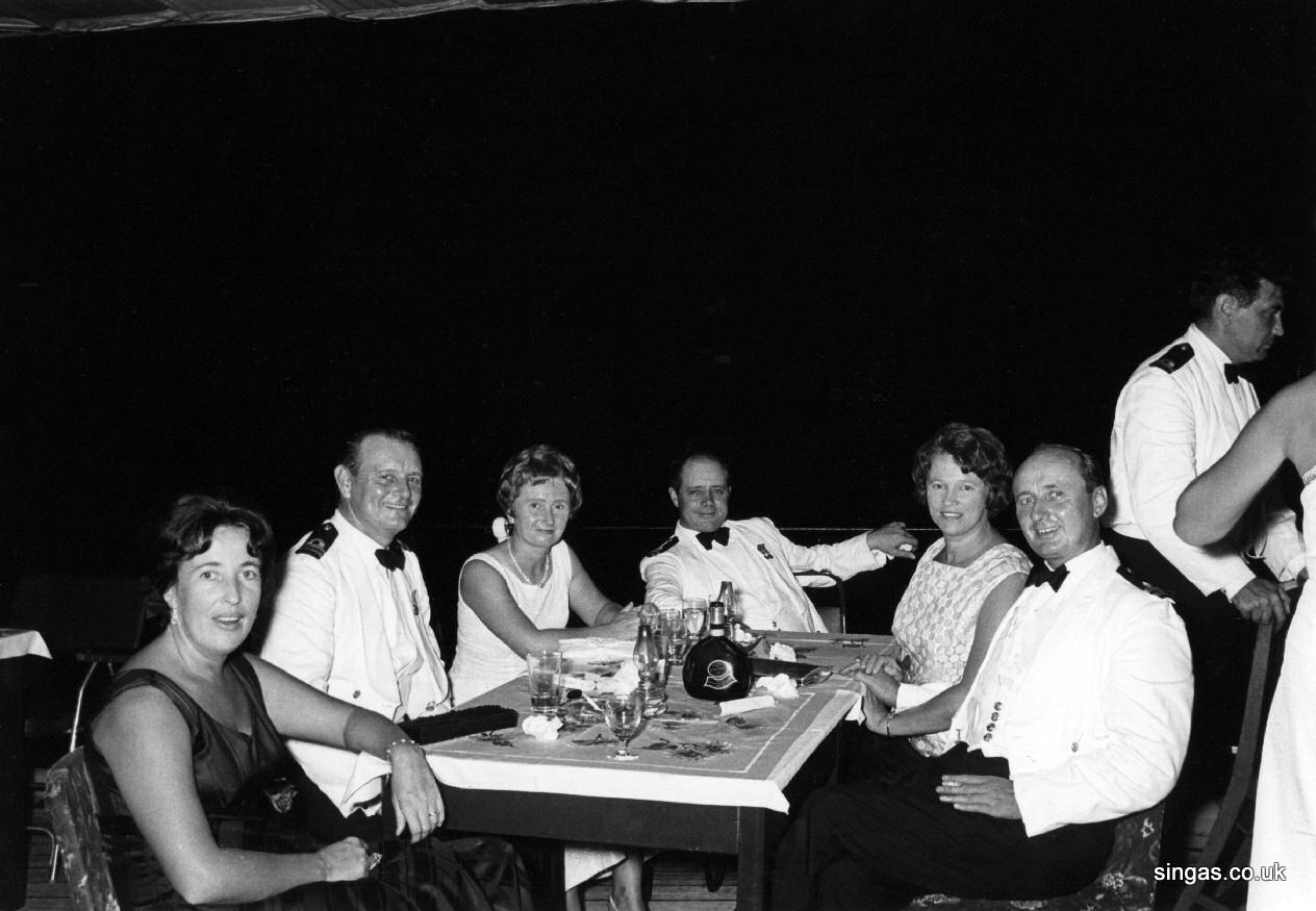 _small.jpg) Cpt Launders (of HMS Forth) and his wife at end of table, Vera Nimmo to his left, then Peter
