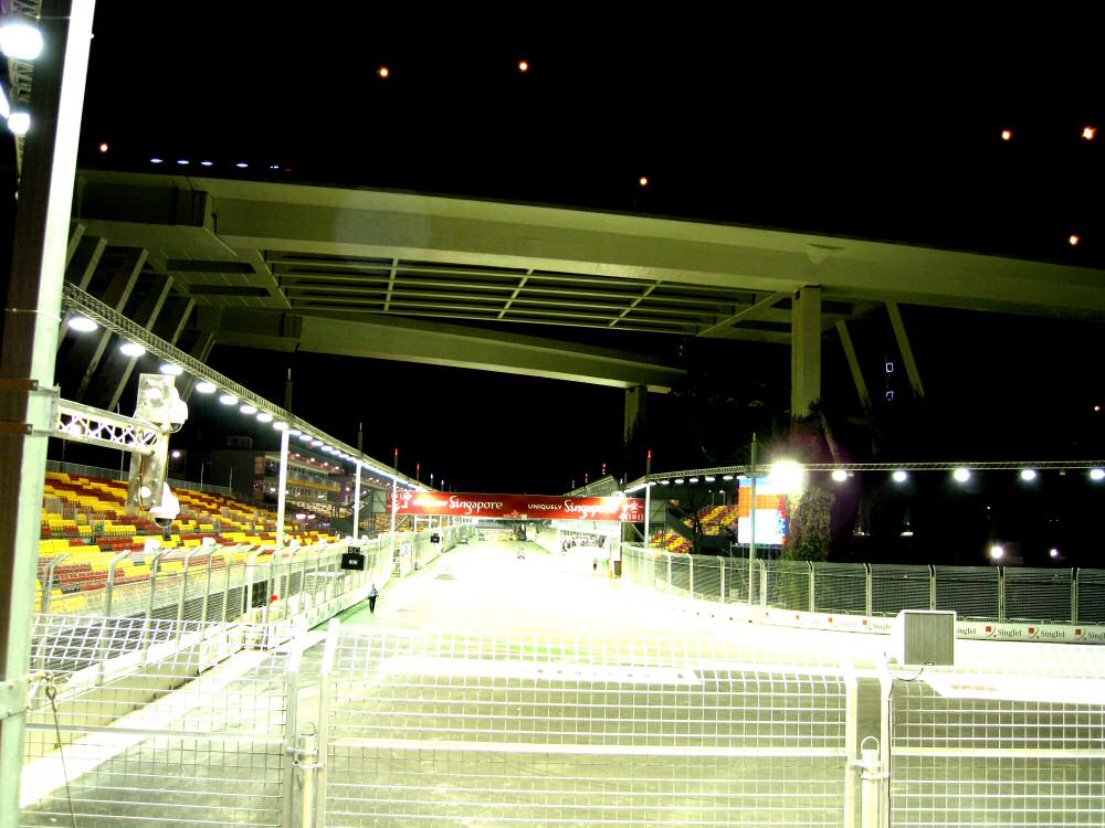 F1 Turn 1 grandstand view of Sheares Bridge-2008 |
