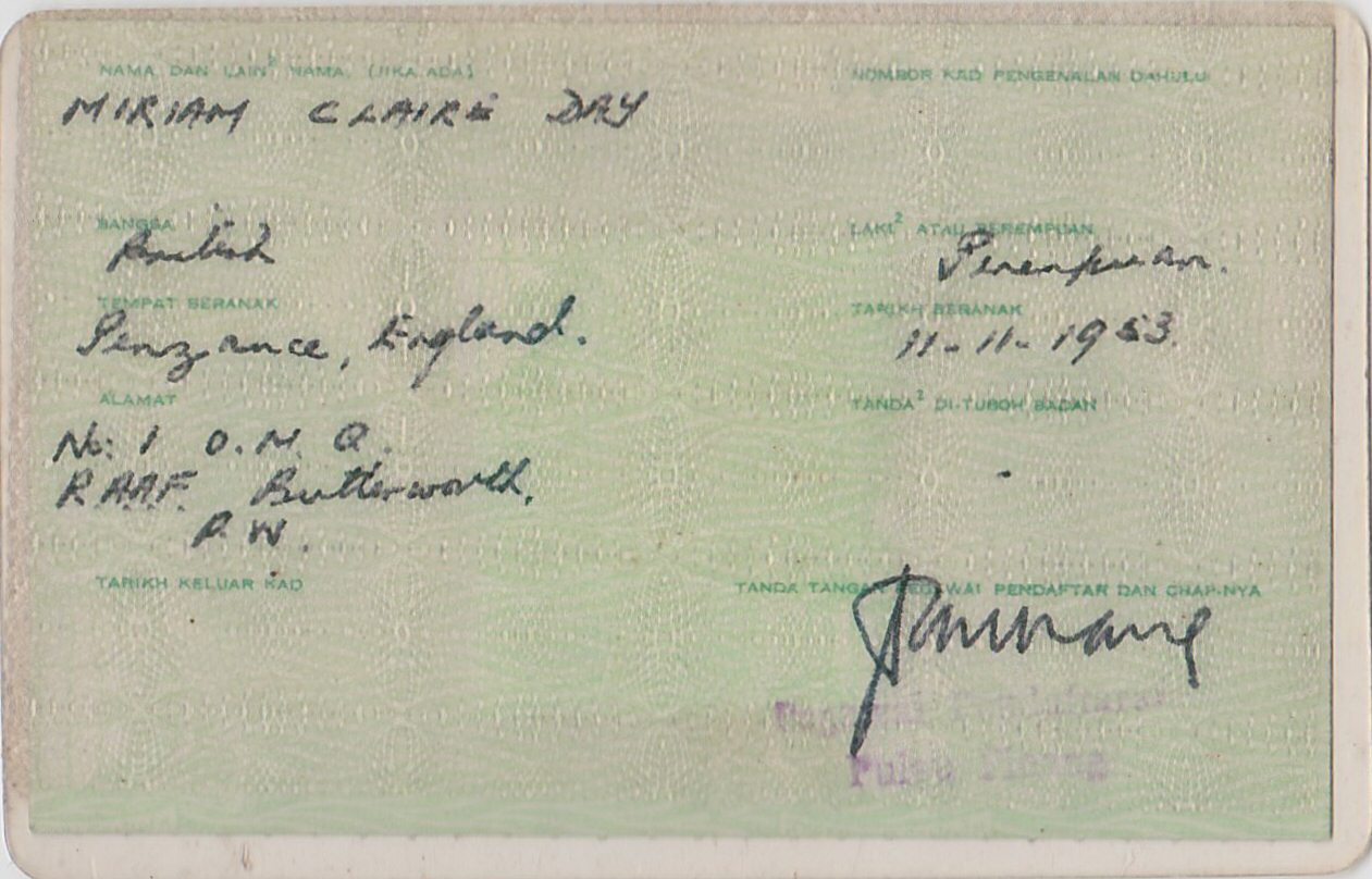 Claire Days' Identity Card "Not strictly speaking Singapore but...my ID card from Butterworth giving my address as
