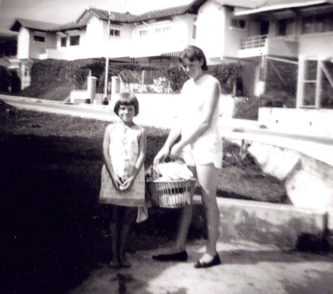 Janet with sister Sharon on the Chip Bee Estate. Sharon went to Alexandra School. |