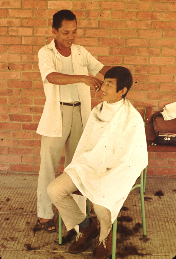 A Gurkha Boarder having his hair cut