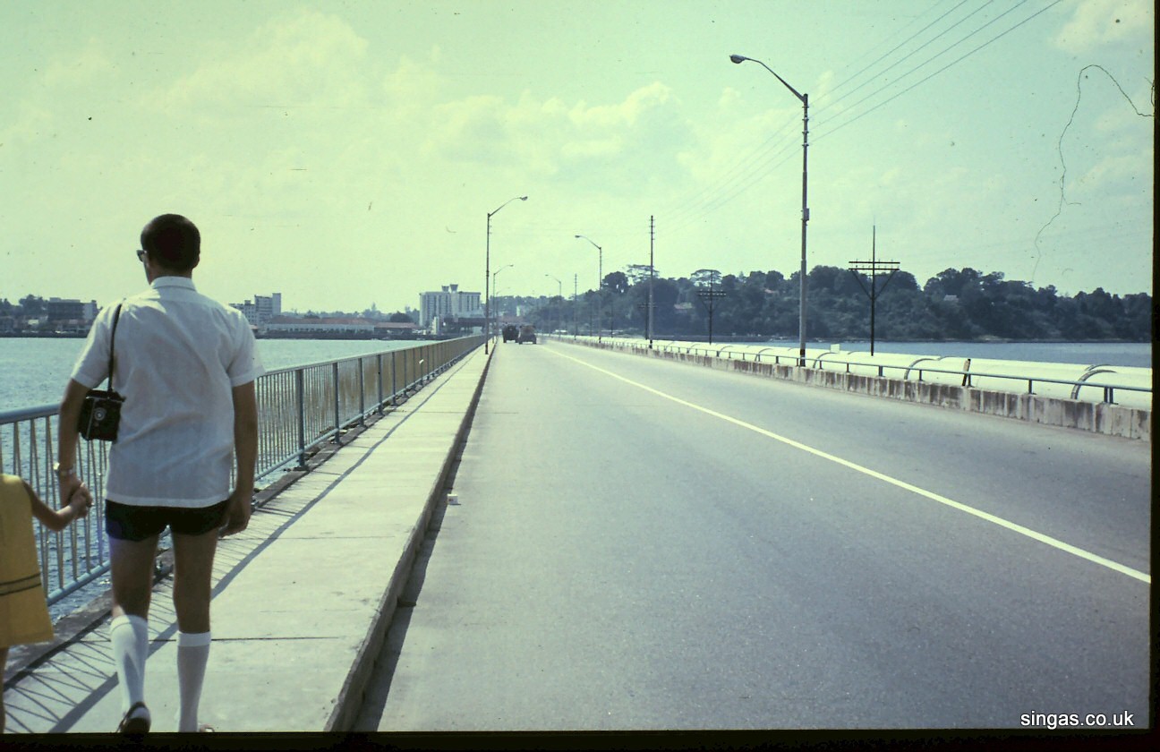 1969 Singapore. The Causeway, S'pore to Malaya. Tony & Karyn. |