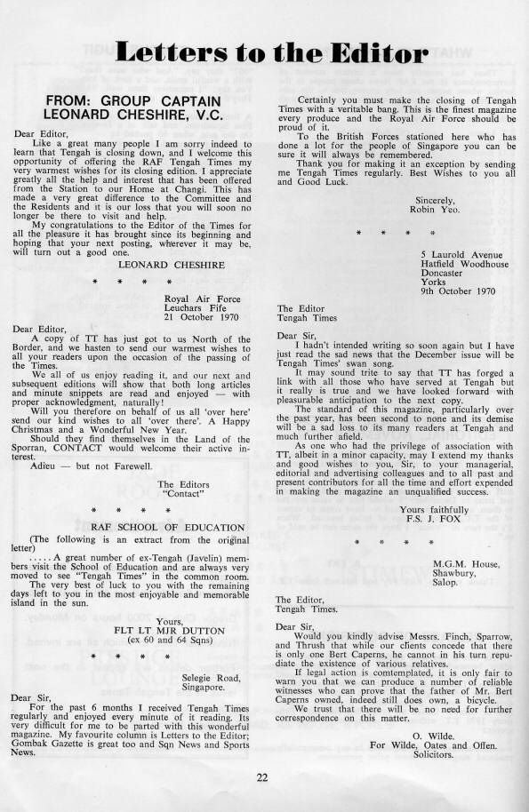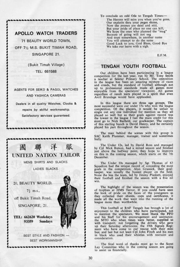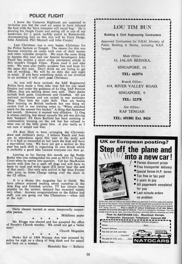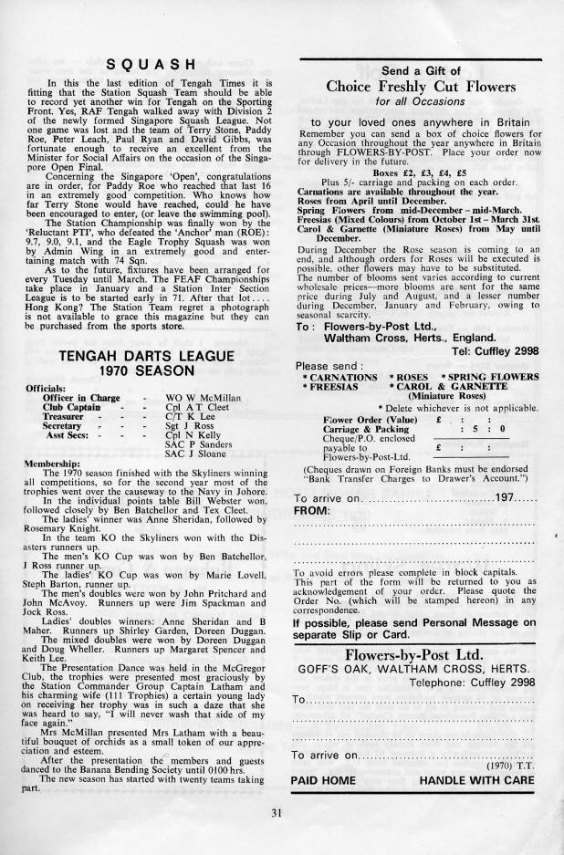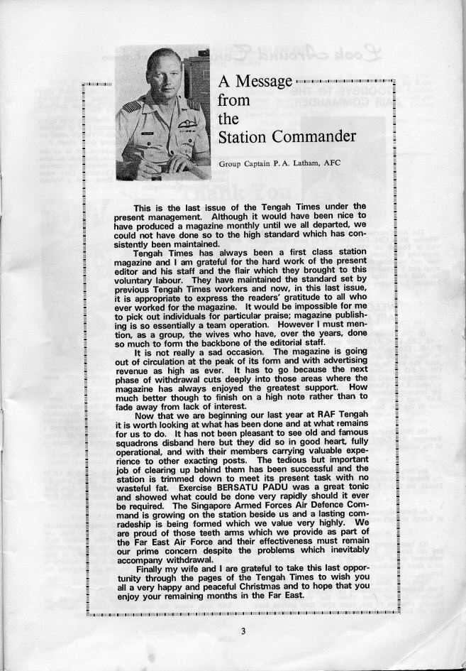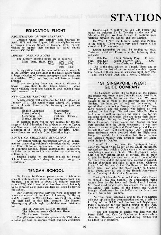 The last edition of the Tengah Times published in December 1970. Many thanks to Mick Crossey for this contribution.