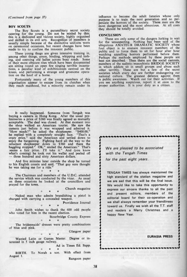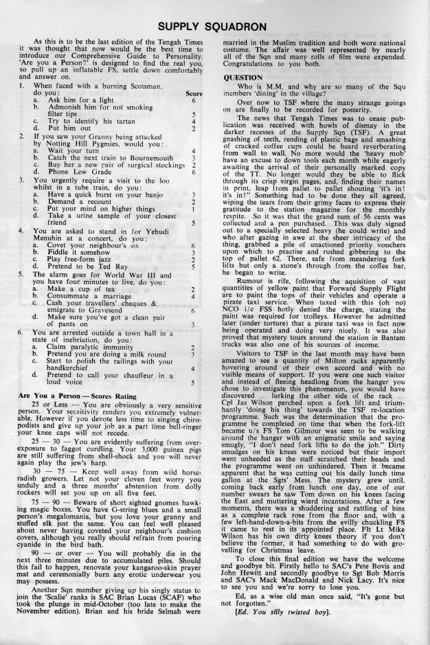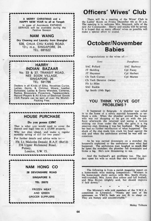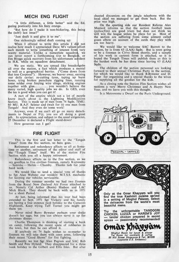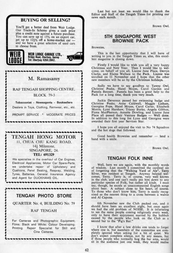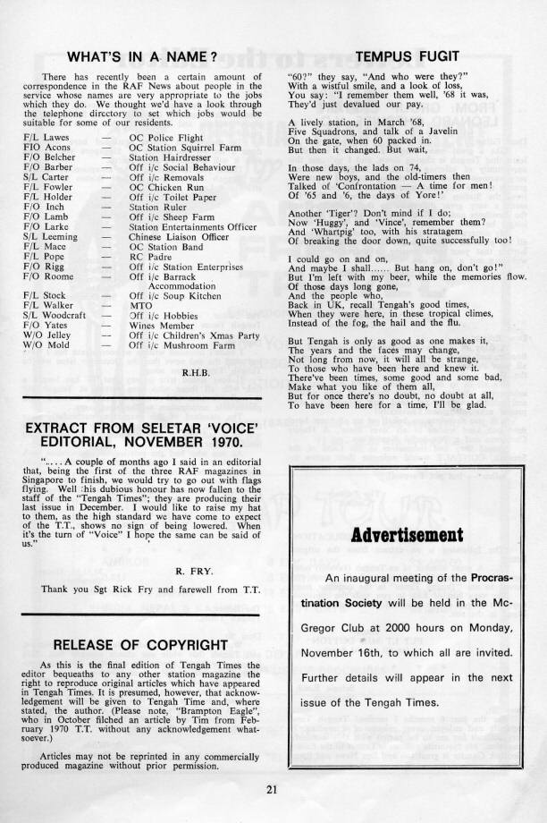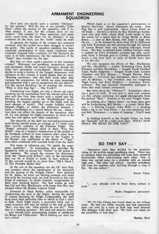 The last edition of the Tengah Times published in December 1970. Many thanks to Mick Crossey for this contribution.