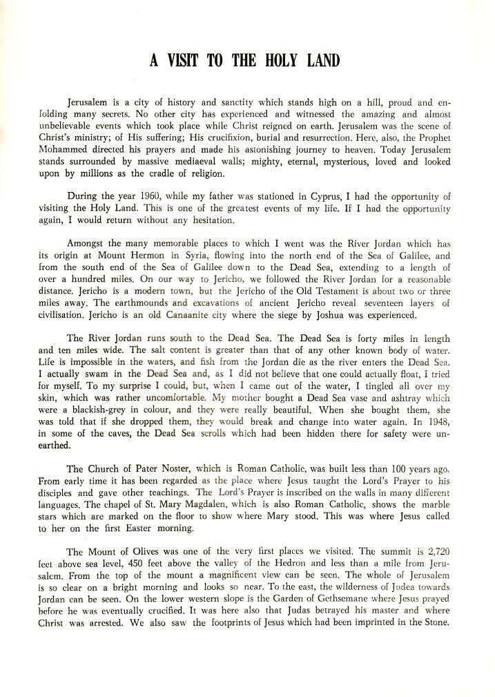 ![]() Page 10 A visit to the Holy Land. by Rosemary Hammond. Class 40 |